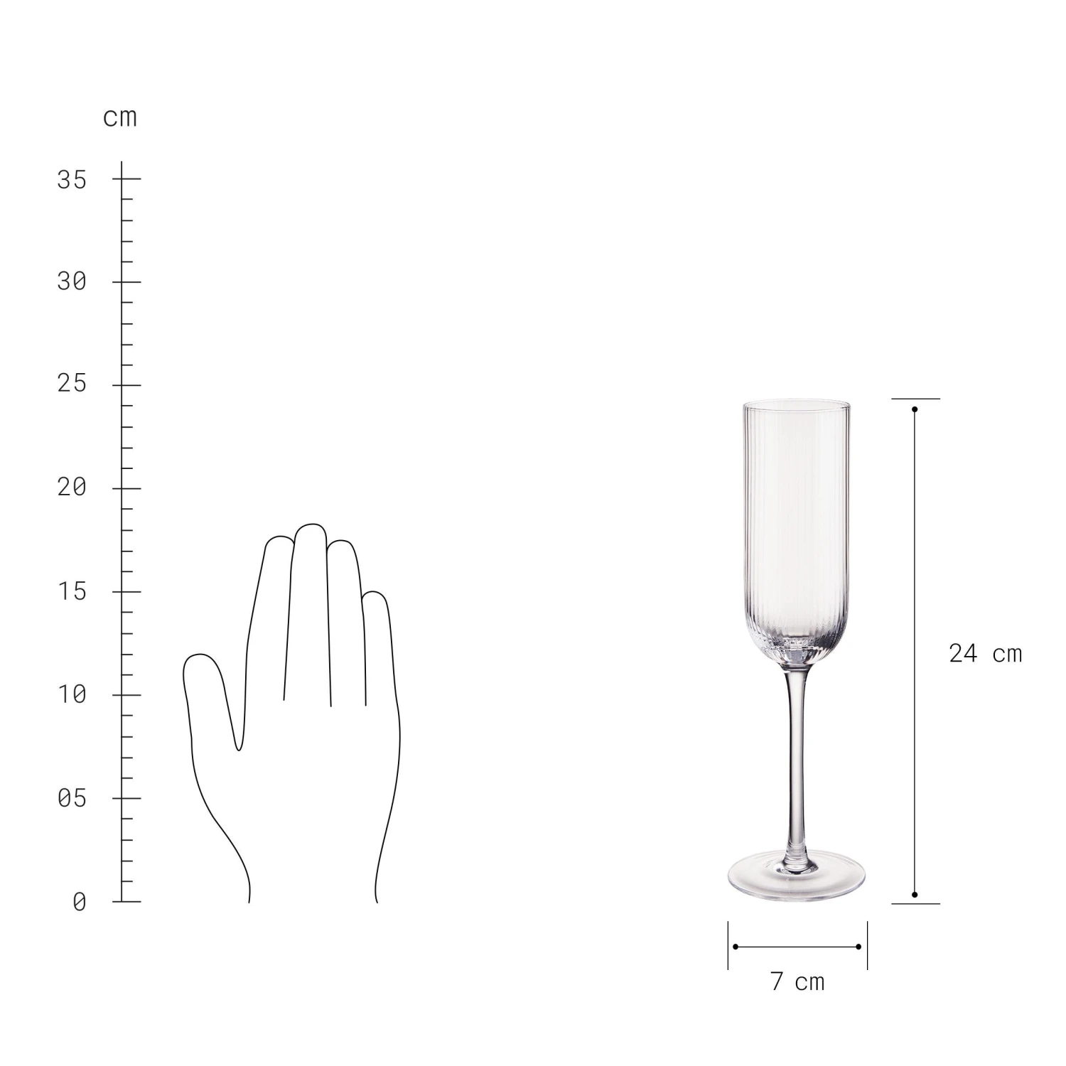 Wenn es einem Glas gelingt, modern und zugleich zeitlos, charakterstark und unaufdringlich zu sein, dann ist es das Baron Sektglas im 4er-Set mit Rillen. Dieses mundgeblasene Glas für Sekt, Prosecco, Crémant, Cava und Champagner fällt mit seiner geradlinigen Form und den markanten Rillen angenehm ins Auge. Auf dem gedeckten Tisch glänzt es formvollendet bei festlichen Anlässen und dem genussvollen Essen.