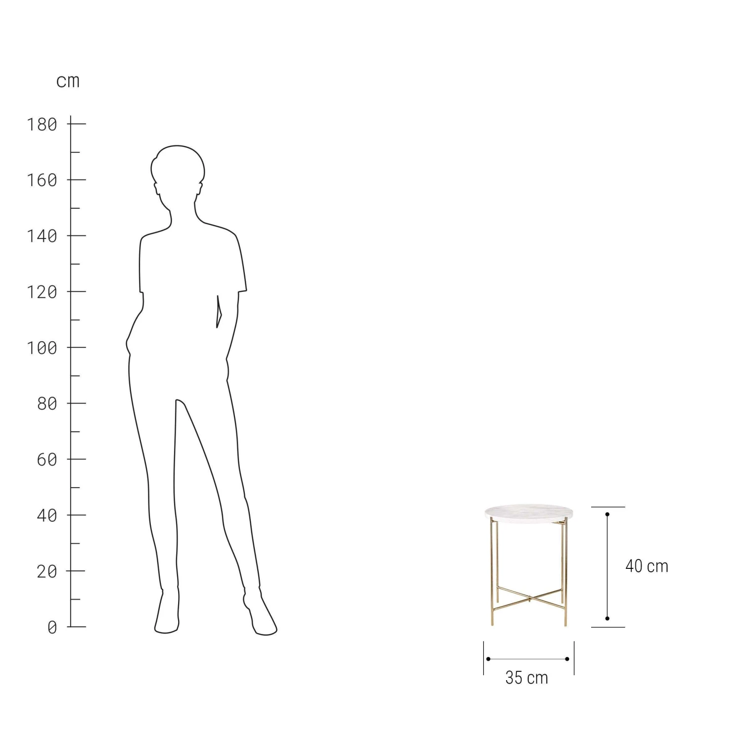 Unser Beistelltisch aus der Marble-Serie erweist sich mit Marmorplatte und faltbarem Gestell als modernes Multitalent beim Einrichten und Dekorieren. Zeitlos schön und modern zugleich eignet er sich ideal als Couchtisch, Buchablage oder Deko-Eyecatcher. Über dem antik anmutenden Goldgestell befindet sich zudem eine edle Platte, die auch separat als Dekoplatte genutzt werden kann. Funktional verfügt das Möbelstück über ein faltbares Gestell, welches ein schnelles und einfaches Zusammenklappen ermöglicht.