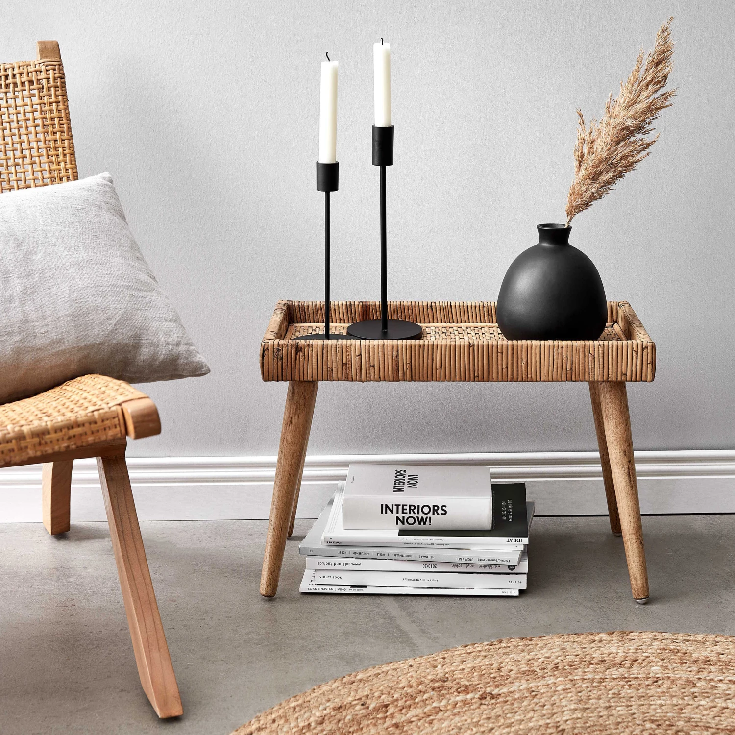 Weil wir von authentischen Rattanmöbeln gerade gar nicht genug bekommen können und sie sich so wunderbar kombinieren lassen, erobert der Basse Beistelltisch Rattan unsere Herzen und Wohnungen im Sturm. Als echter Allrounder mit traditionellem Charme dient er überall als dekorative Ablage, wo wir z.B. Schlüssel, Bücher, Windlichter oder Tabletts deponieren oder präsentieren möchten.