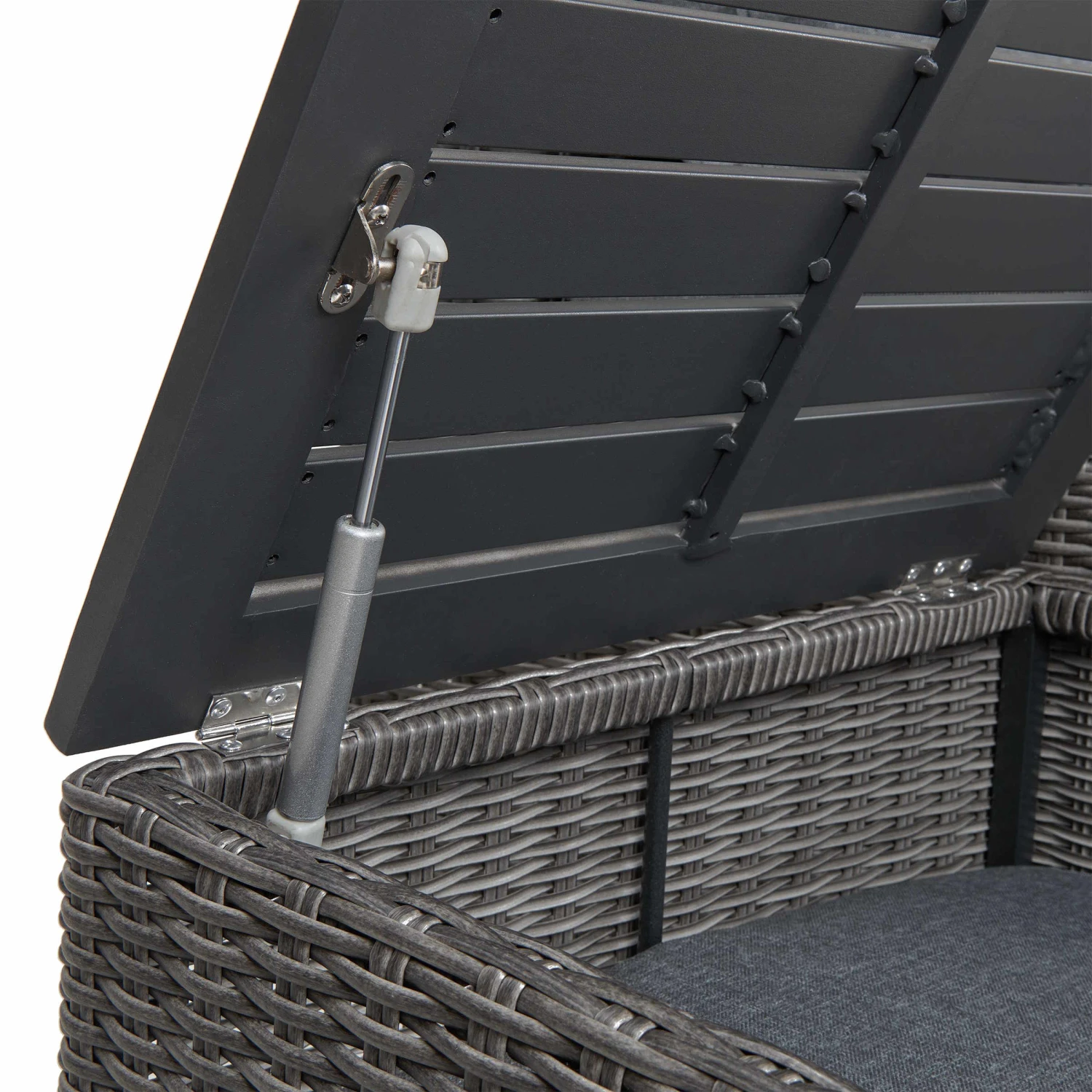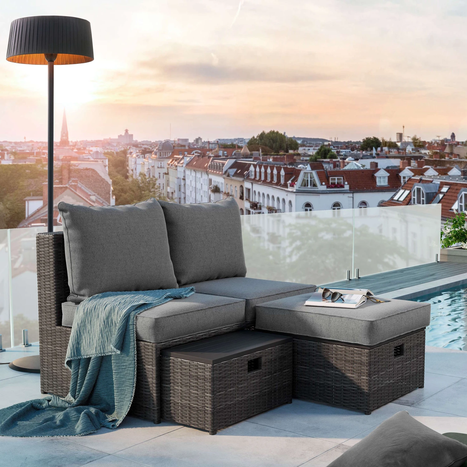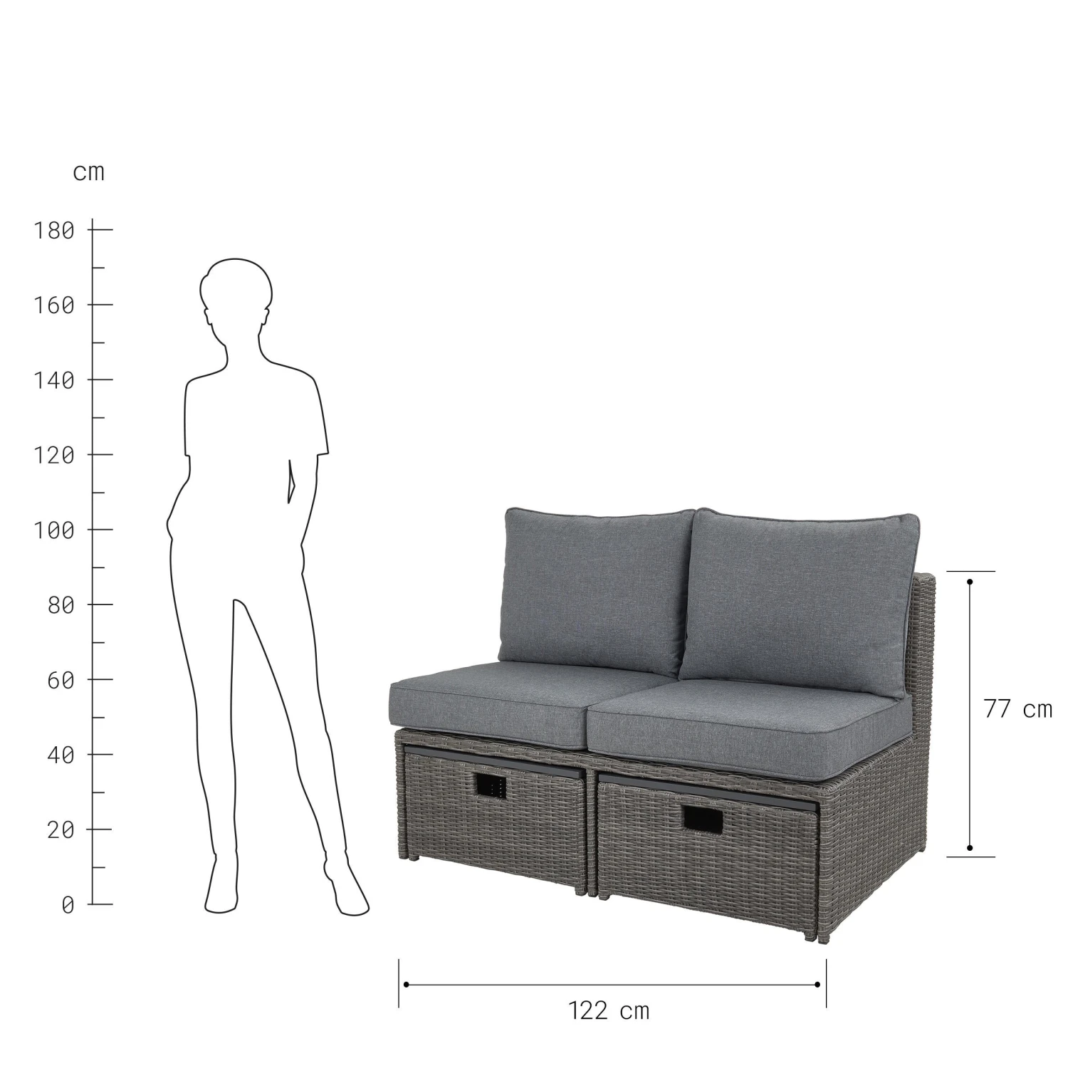 Ganz groß in Sachen Vielseitigkeit: Mit dem cleveren Block Party Loungesofa richten Sie sich auch auf dem kleinen Balkon perfekt ein. Dank verschiedener Stellmöglichkeiten passt sich die Lounge-Ecke an den vorhandenen Platz und Ihre Lieblingssitzposition an. In den Fußteilen mit praktischem Stauraum verschwinden Balkonutensilien wie Gärtnerzubehör, Stuhlkissen & Co., das schafft extra Platz und Ordnung. Auch in puncto Qualität hat es das Block Party Mini-Loungeset in sich: Bei diesem handgewebten Möbelstück wertet halbrunder Kunstrattan das wetterfeste Geflecht zusätzlich auf.