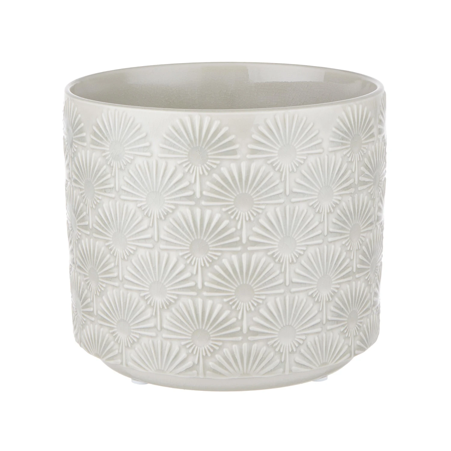 Einfach mustergültig: Der Ornament-geschmückte Bloomy Blumentopf in Grau lässt das Kunststoff-Drumherum von Topfblumen dekorativ verschwinden. Aus Steingut. In verschiedenen Größen und Farben erhältlich, ideal auch zum Kombinieren.