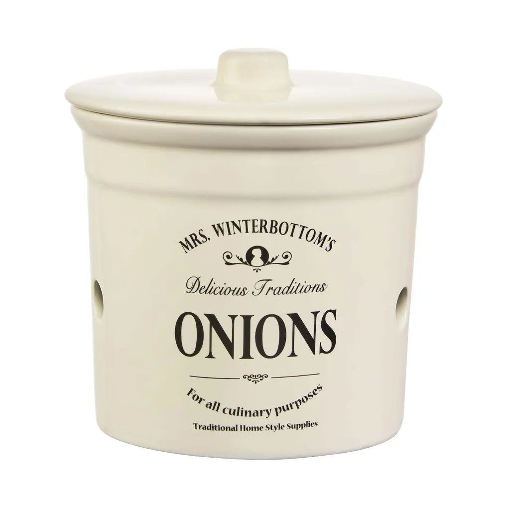Weil auch Zwiebeln in Sachen Aufbewahrung äußerst eigensinnig sind, bekommen sie ihre eigene Dose. Mit Luftlöchern. Bei der Serie Mrs. Winterbottom´s ist an alles und jeden gedacht. Dies und das lässt sich mit den traditionellen Dosen, Flaschen, Töpfen, Schalen, Kannen etc. aufbewahren und/oder auftischen. Jedes Teil ist aus Steinzeug exklusiv für Butlers gefertigt und trägt ein typisch englischesNachbildung. Und natürlich passt alles so perfekt zusammen wie die Deckel auf die Töpfe oder die Metallausgießer auf die Flaschen.