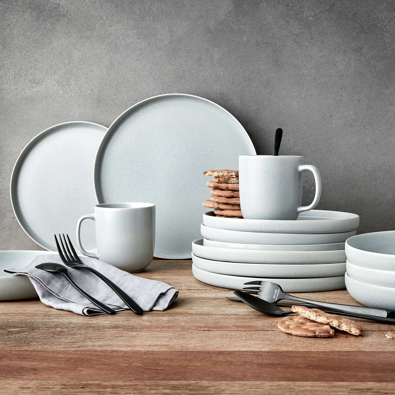 Hier bringt minimalistisches Design die Qualität wirkungsvoll zur Geltung: Das 12-teilige Casa Nova Dinner-Set aus Steinzeug wurde liebevoll in Portugal gefertigt. Der Manufaktur-Look zeigt sich im Unikat-Charakter der reaktiven Glasur und leicht unperfekten, organischen Form. Das skandinavische Design und der robuste Look machen die Casa Nova Geschirrserie zu einem zeitlosen Alltagsgeschirr mit natürlichem Touch. Das Geschirr zeichnet sich durch die besondere reaktive Glasur mit effektvollem Farbverlauf aus – verfügbar in den Farben Grau und Schwarz.