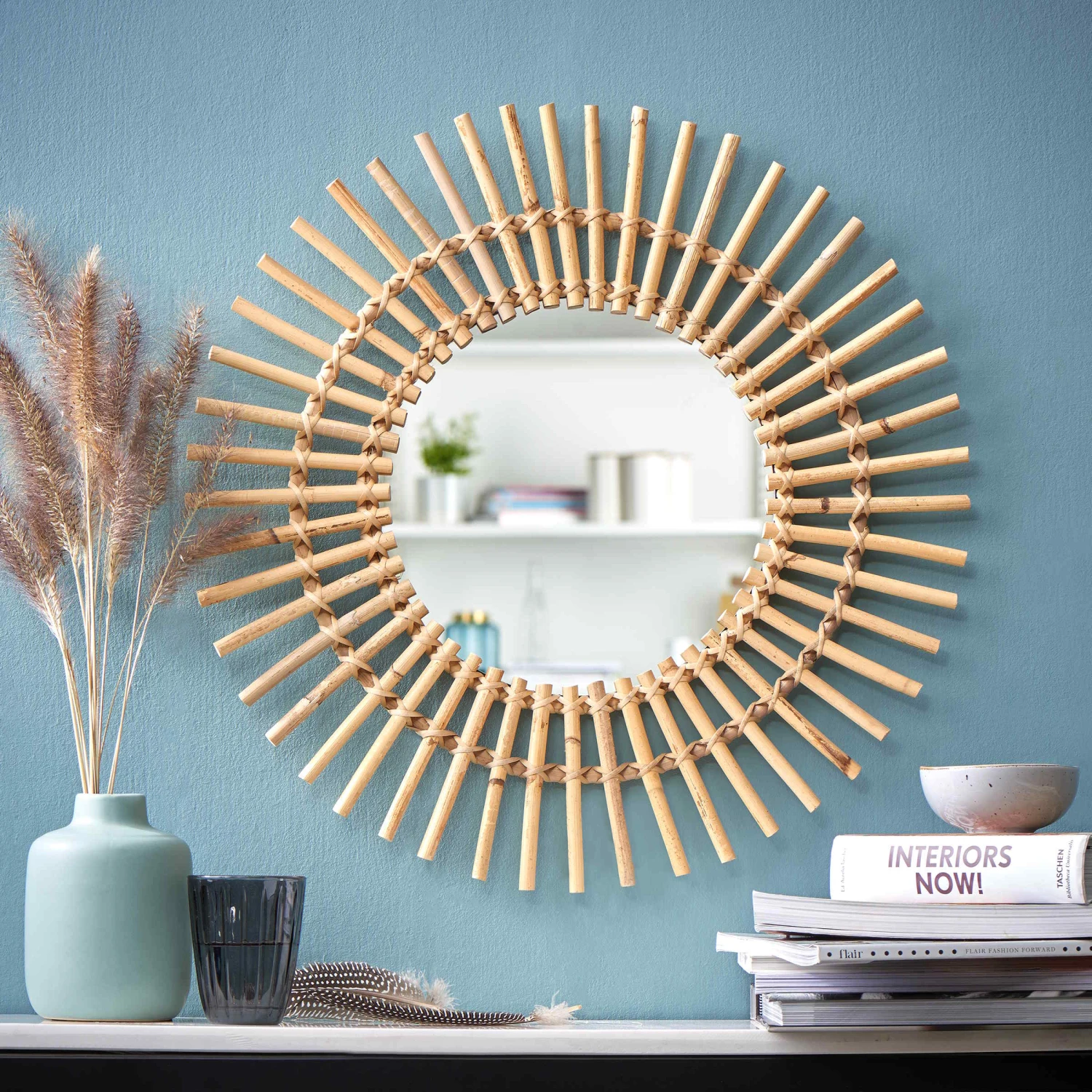 Ein bisschen Ibiza-Flair für Ihre Wohnung: Der handgearbeitete Cottage Rattan Spiegel sonnenförmig spiegelt das mediterrane Lebensgefühl wider, sonnig und voller Natürlichkeit. Solche Boho-Akzente stehen Ihrem Flur und wirken ebenso dekorativ im Wohn- und Schlafbereich. Weitere Varianten erhältlich.