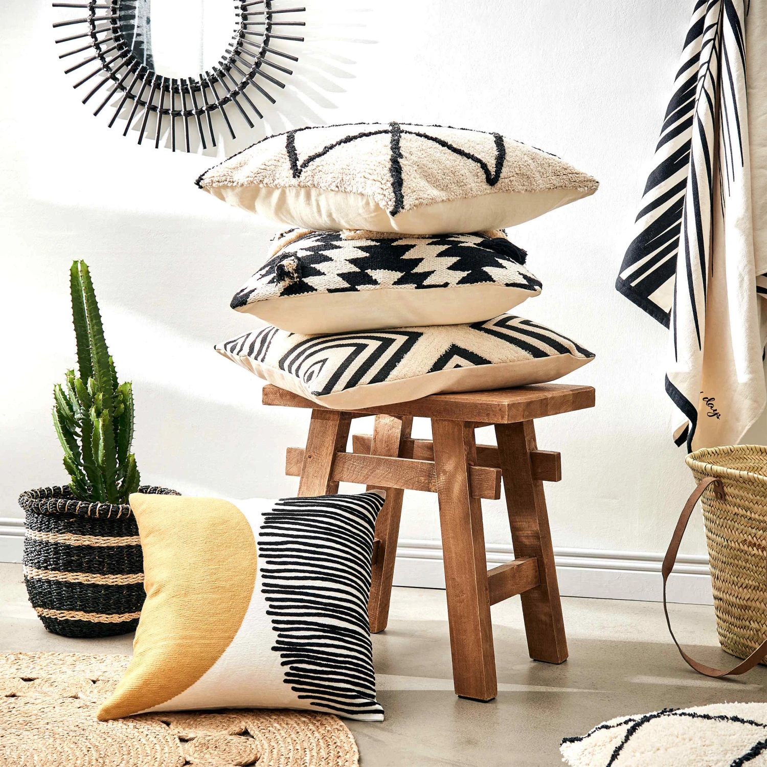 Sie stylen Ihr Zuhause im angesagten Ethno-Trend und platzieren dabei das Easy Ethno Kissen aus gelb-schwarzer Baumwolle und Acryl lässig auf Ihrem Bett, Sofa oder Sessel. Und noch viel lieber verteilen Sie gleich einen ganzen Arm voller Easy Ethno Kissen überall dort in Ihrem Wohnzimmer oder Schlafzimmer, wo Sie es sich gerne gemütlich machen. Mit Reißverschluss, inkl. Füllung aus 100 % Polyester.