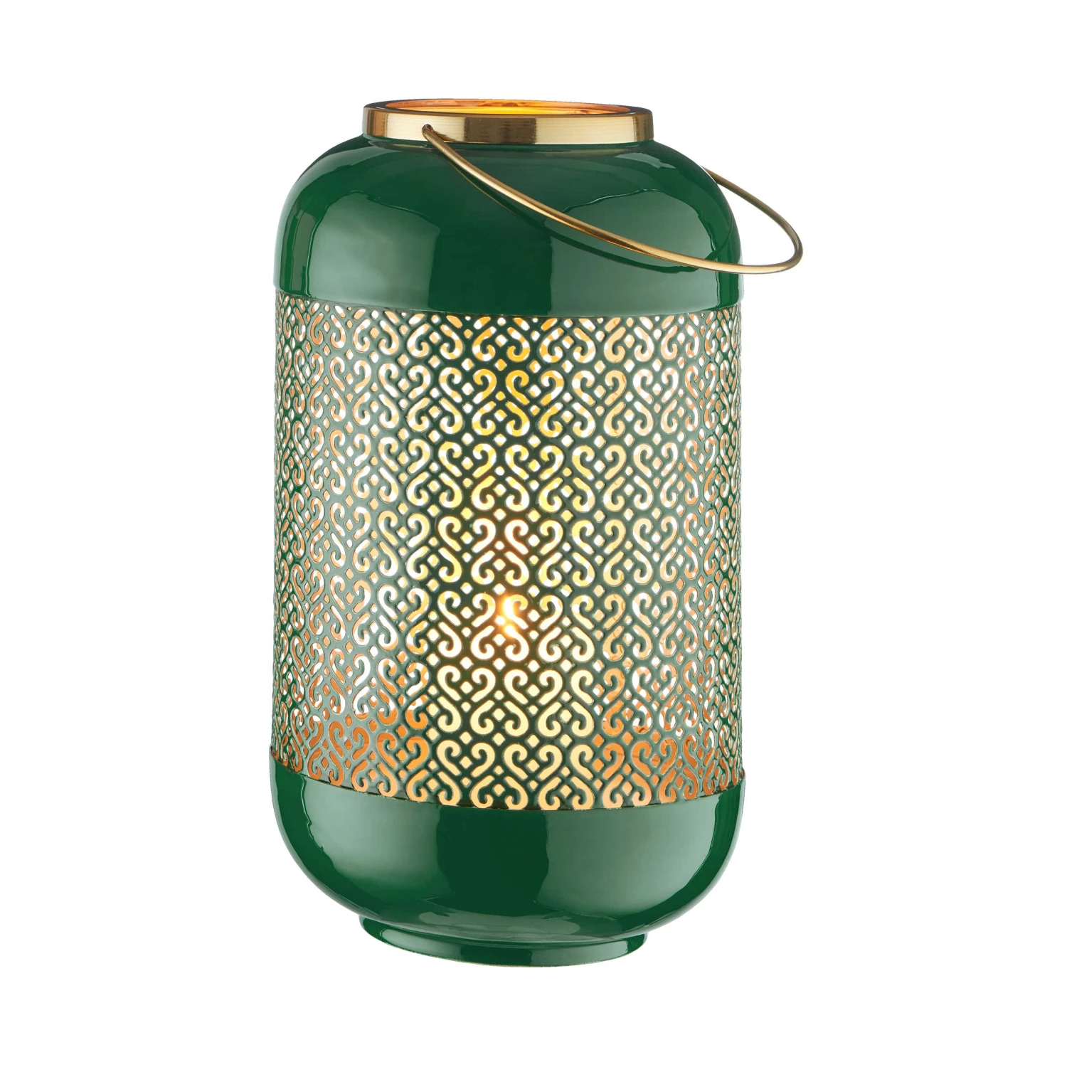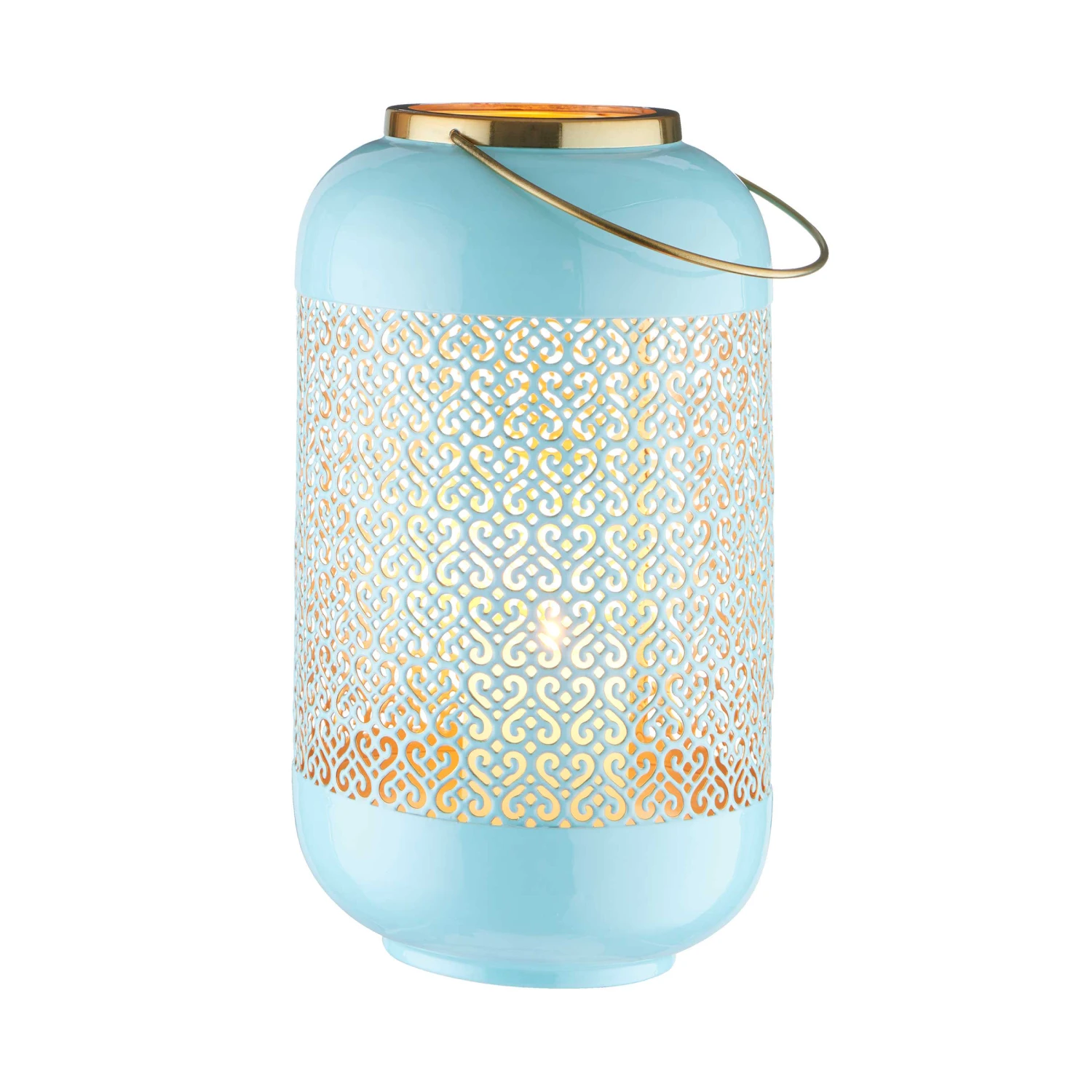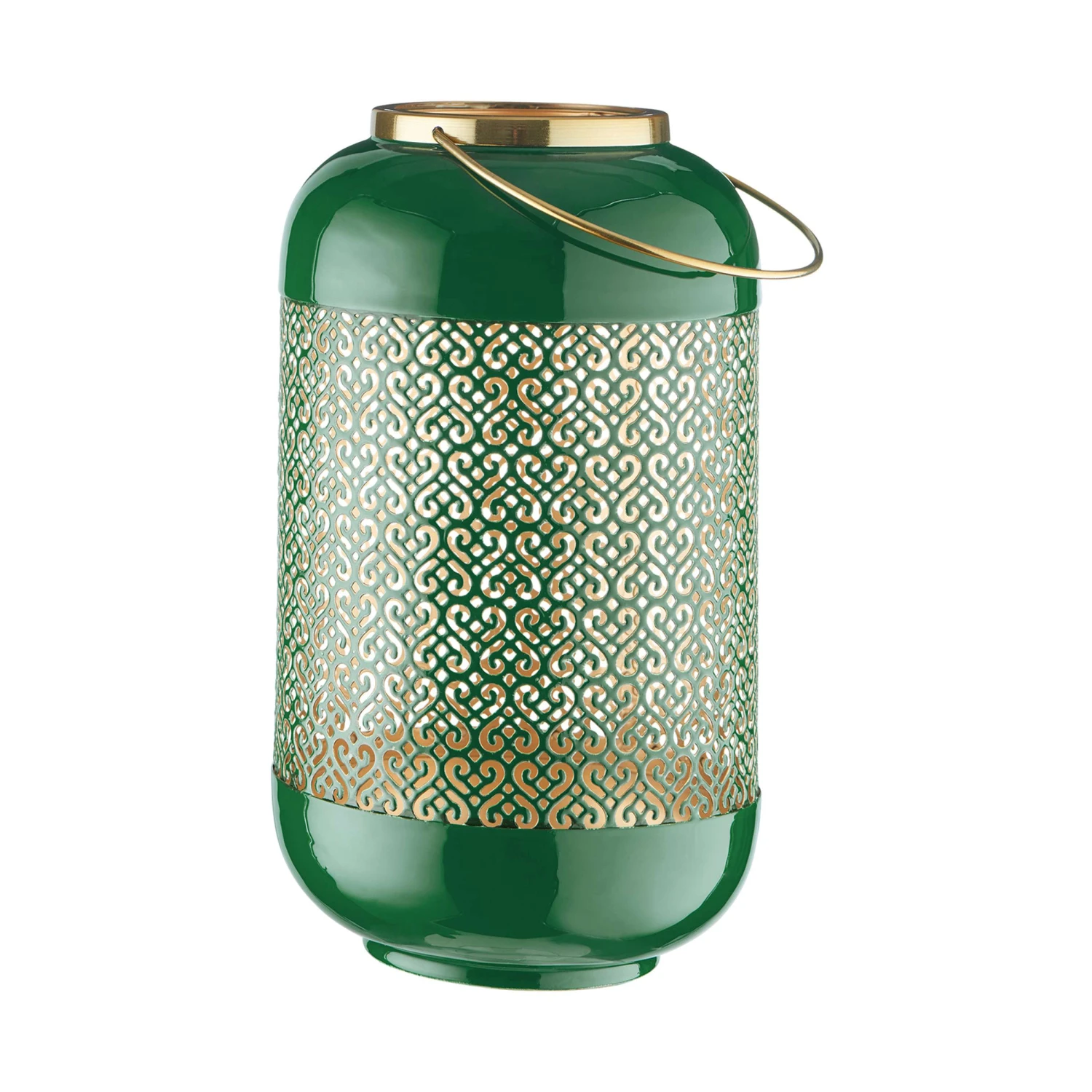 Metallische Effekte und durchbrochene Ornamentik: Als stylische Deko-Queen lässt es die Emilie Metall Laterne so richtig funkeln in Ihrem Zuhause, zum Beispiel auf Regal, Anrichte oder Sideboard. Oder Sie nehmen die schöne Laterne abends mit auf Balkon oder Terrasse und genießen gemeinsam romantische Stunden.