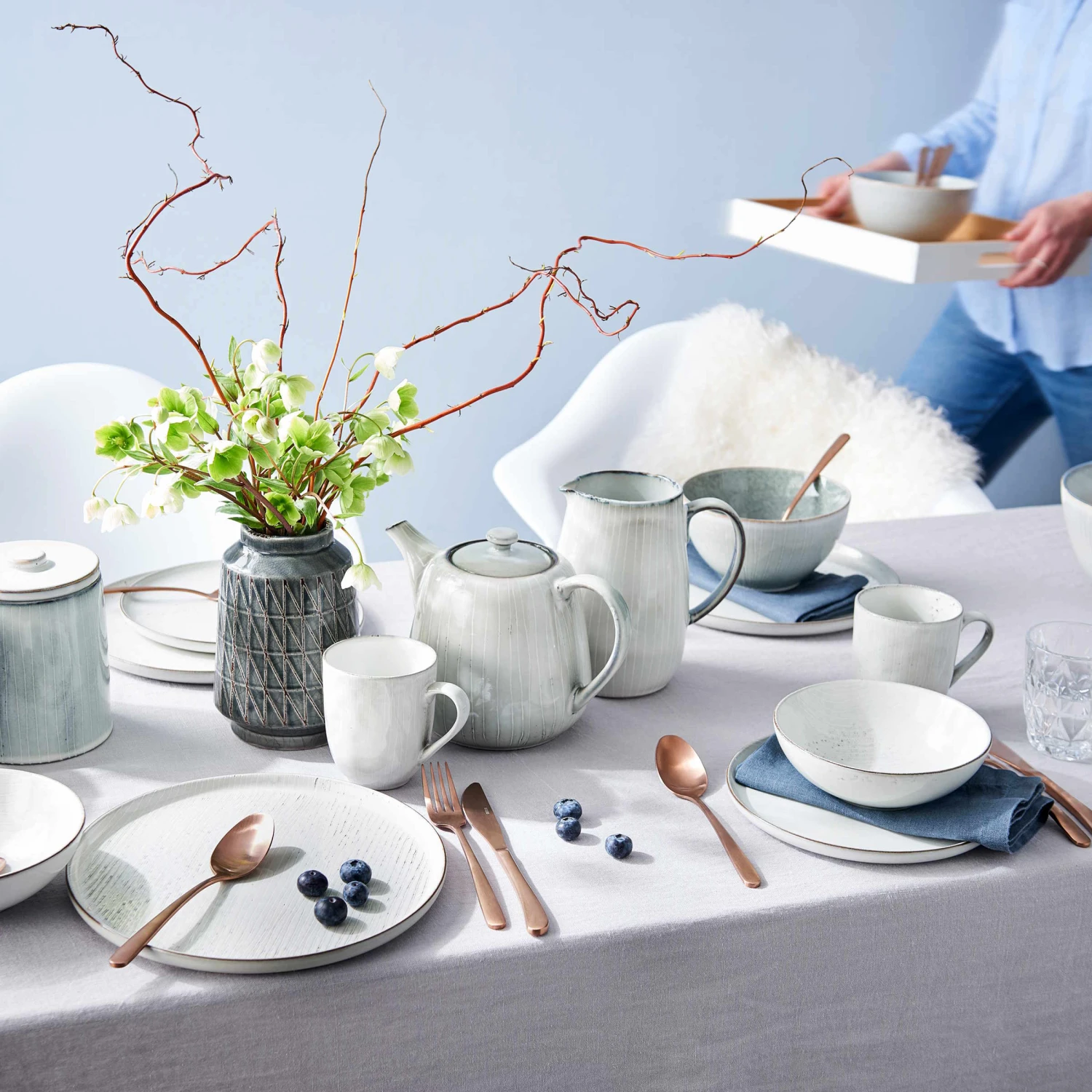 Die Henley Teekanne aus Steinzeug freut sich schon darauf, mit Ihnen und Ihren Freunden zu essen. Und genau wie Sie steht sie auf diese unkomplizierte, authentische Art, die sich beim Kochen, Tischdecken und Dekorieren lieber vom Gefühl als von strikten Vorgaben leiten lässt. Aus der Henley Serie sind passend erhältlich: ein großer Teller, ein kleiner Teller, eine Tasse, eine Karaffe und weitere Schalen, sowie Aufbewahrungsdosen.