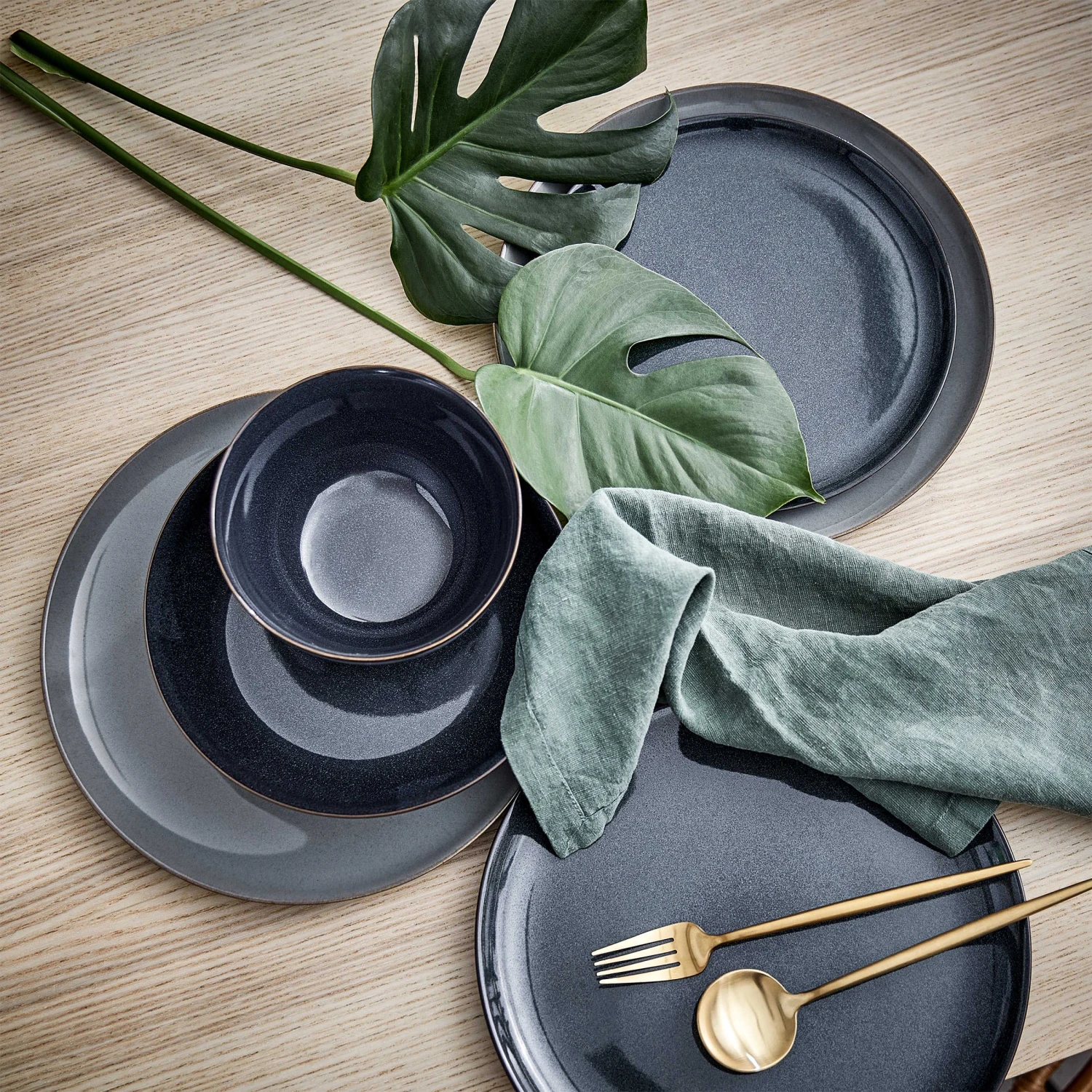 Mit unserer Geschirrserie Native im angesagten minimalistischen Stil kommt der neue Trend auf den gedeckten Tisch! Das 12-tlg. Geschirr-Set aus Steinzeug in der Farbe Grau ist handgefertigt in Portugal. Durch die reaktive Glasur wird jedes Teil der Serie zu einem echten Unikat. Das Set hat eine dünne und hochwertige Scherbe mit einer klaren Formgebung. Durch den unglasierten Boden, wodurch das Rohmaterial zum Vorschein kommt, bringt er einen Manufaktur-Look auf Ihren gedeckten Tisch. Die zusätzlichen Kristalle in der Glasur machen die stilvolle Geschirrkollektion zu etwas ganz Besonderem. Jedes Teil der Serie ist spülmaschinen- und mikrowellengeeignet.