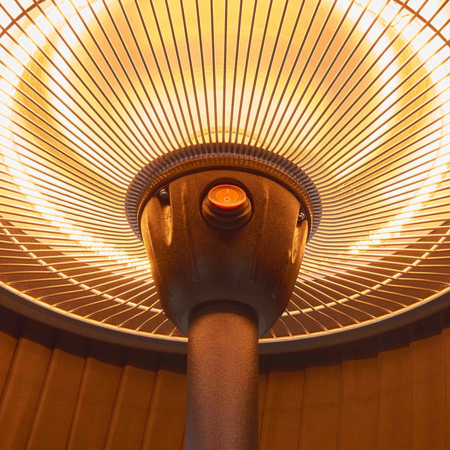 Einfach draußen sitzenbleiben: Lange Abende auf Balkon und Terrasse genießen Sie jetzt mit dem Patio Halogenheizstrahler. Aus Liebe zur Umwelt verzichtet er auf Gas und heizt Ihnen lieber mit strombetriebenen Halogen-Heizröhren angenehm ein. Funktional überzeugt er außerdem mit einfacher Bedienung und Sicherheitsabschaltung bei Umkippen. Ihr Herz erwärmen wird dieser Heizstrahler auch mit seiner Optik, geprägt von modernem Design und einem dekorativem Textilschirm.