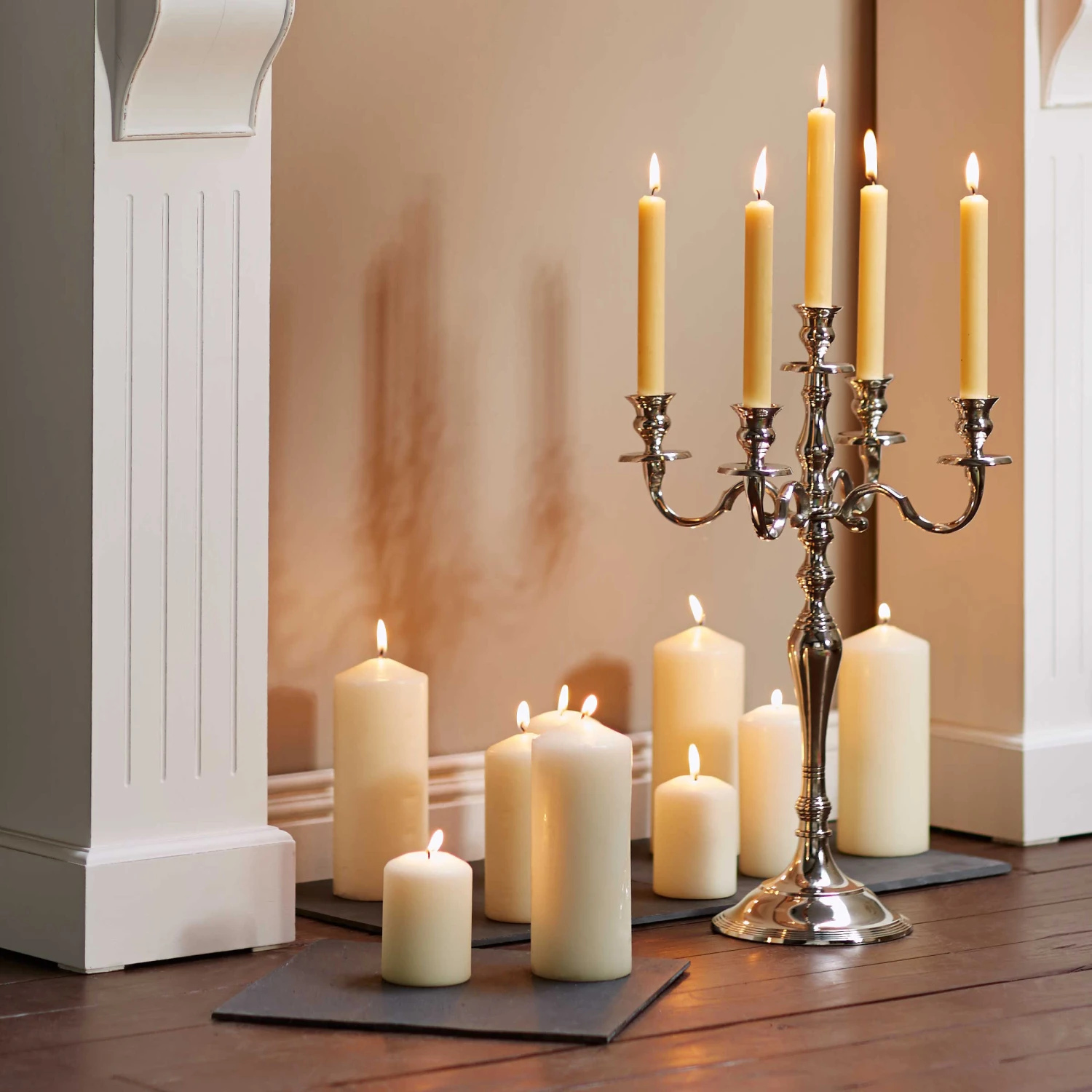 Die raue Schönheit der Natur zeigt sich in diesem schlichten Untersatz aus abgeschliffenem Schiefer. Er schützt empfindliche Tische oder Sideboards vor Kratzern, vor Hitze (z. B. von Laternen oder Kochtöpfen) und vor feuchten Ringen, die durch Flaschen und abgestellte Gläser entstehen können. Doch die Schieferplatte beweist auch bei Dekorationen viel Talent: Es können z. B. mehrere massive Stumpenkerzen auf dem Untersatz angeordnet werden. Auf der Unterseite mit weichen Füßen versehen. In weiteren Größen erhältlich.
