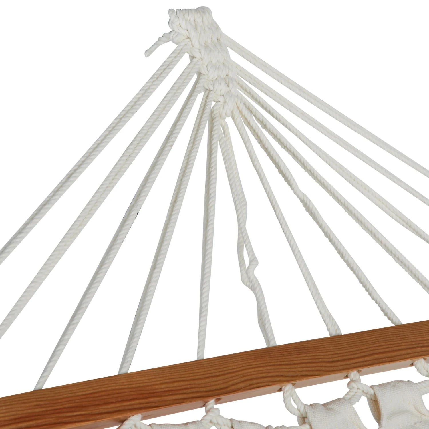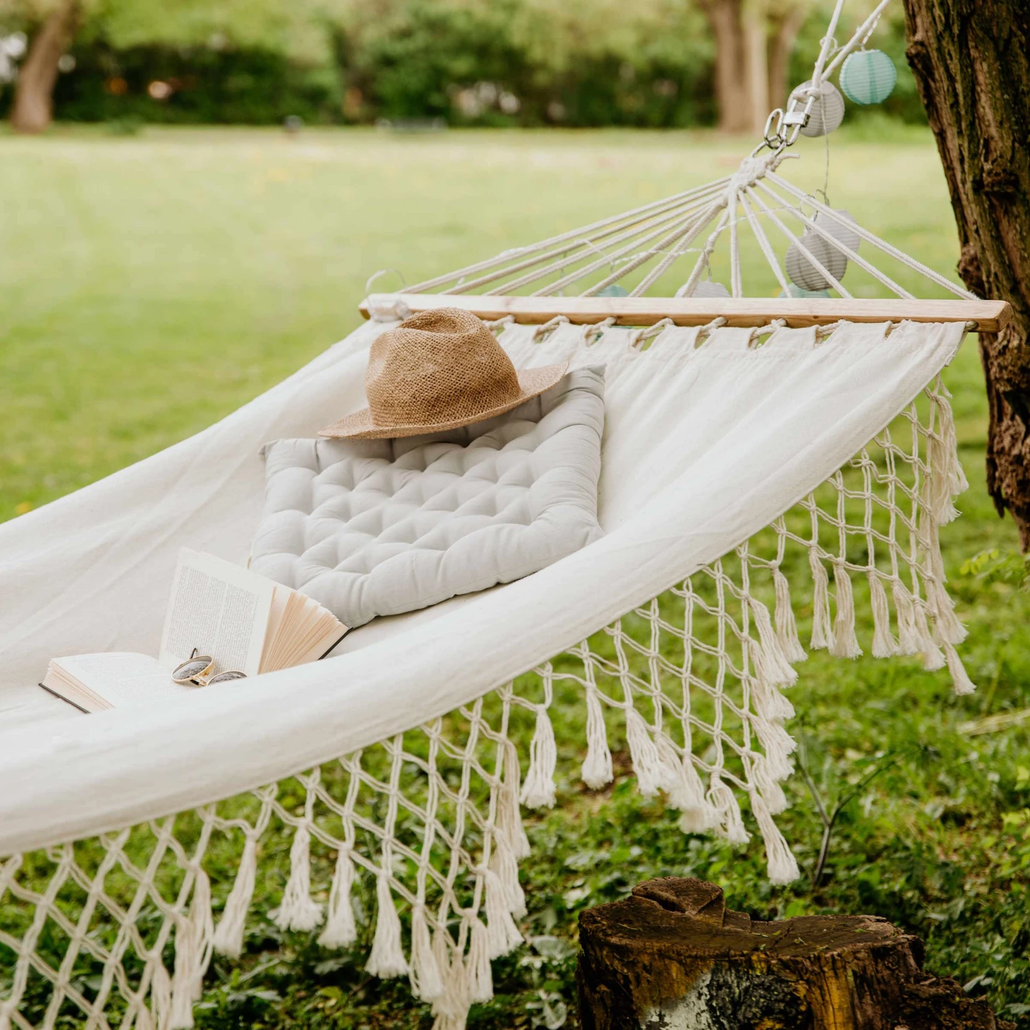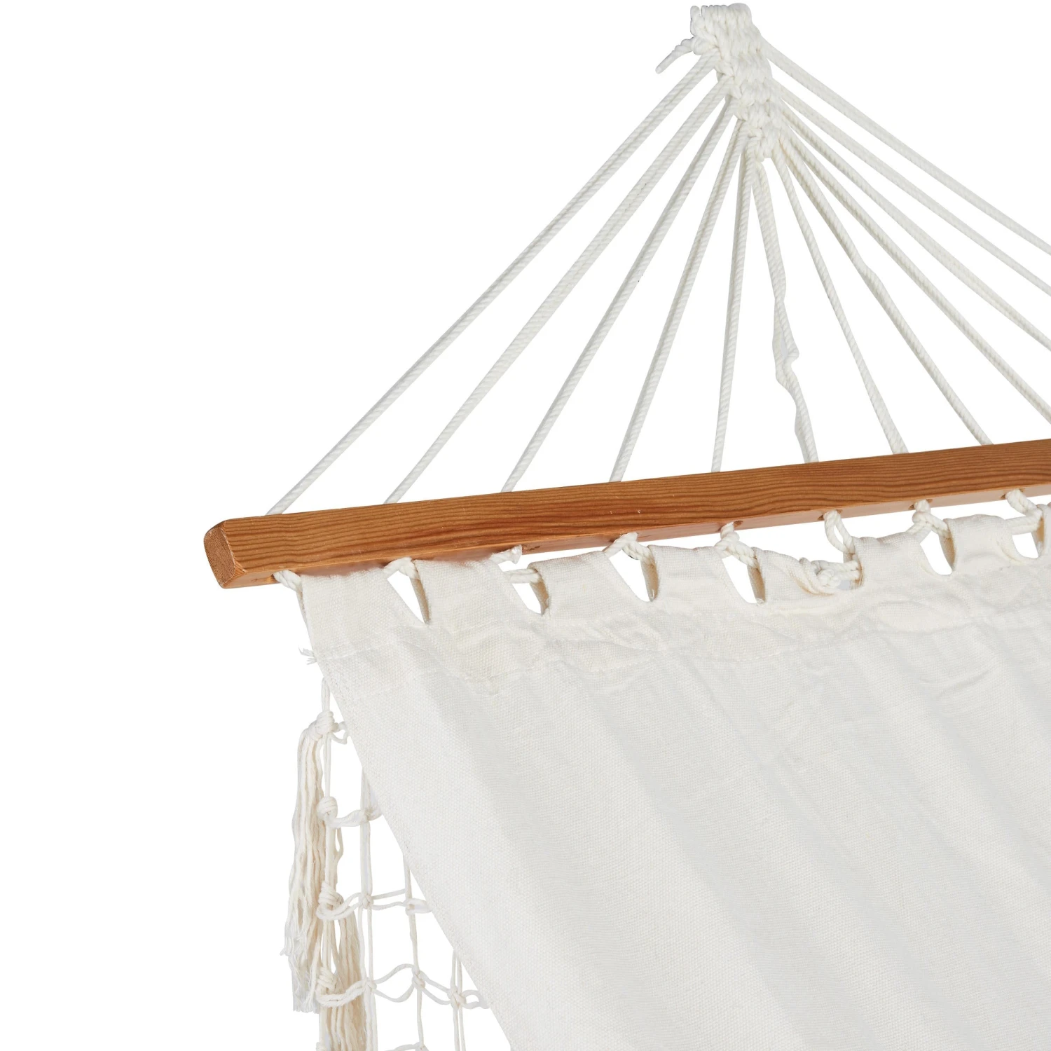 In der Show Me Heaven Hängematte in Creme mit Troddeln lassen Sie ganz gechillt die Seele baumeln. Bei einem guten Buch und einem kalten Getränk in der Sonne. Bei lachenden Kindern im Garten und Schmetterlingen, die durch den Sommerhimmel flattern.